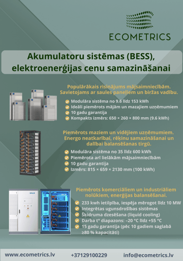 Akumulatoru sistēmas (BESS) – rēķinu samazināšanai