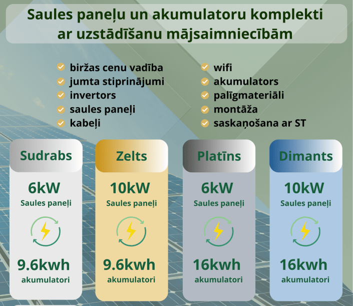 (DIMANTS) - 10kw saules paneļi, 10kw invertors, 16kwh akumulators